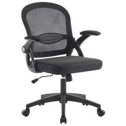 Удобное офисное кресло с мягкими подлокотниками, сетчатой спинкой и поясничным упором. Благодаря специальной конструкции подлокотники откидываются вверх. Кресло оборудовано механизмом качания.