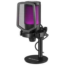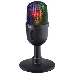 Базовый игровой микрофон с RGB-подсветкой и кнопкой выключения микрофона. Совместим с любыми ПК и ноутбуками с разъемом USB.