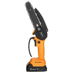 Напряжение АКБ: 20 В Емкость АКБ: 2000 мАч Длина шины: 4"(100 мм) Скорость вращения цепи: 6 м/с Количество звеньев: 28 шт Шаг цепи: 1/4 дюйма Ширина паза: 1.4 мм Комплектация: Пила - 1 шт Защитный кожух - 1 шт АКБ - 1 шт Шина - 1 шт Цепь - 1 шт Зарядное устройство - 1 шт Шестигранный ключ - 1 шт Крепежный комплект (винт - 1 шт, шайба - 1 шт, пружина - 1 шт) - 1 шт Руководство по эксплуатации - 1 шт