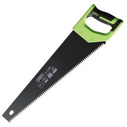 **Ножовка по дереву Deli DL6850, 500 мм** Ищете надёжный инструмент для работы с деревом? Тогда вам подойдёт ножовка Deli DL6850. Она имеет следующие особенности: * **Полотно длиной 500 миллиметров.** Это позволяет работать с разными деревянными заготовками. * **Сталь 65Mn.** Прочное полотно изготовлено из стали 65Mn, что обеспечивает долговечность инструмента. * **Шлифовка зубцов с двух сторон.** Зубцы ножовки отшлифованы с обеих сторон, поэтому инструмент подходит как для продольного, так и для поперечного пиления. * **Литая рукоять из двухкомпонентного противоударного пластика.** Удобная рукоятка снижает нагрузку на руку во время работы и обеспечивает комфортный хват.
