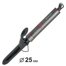 • Диаметр 25 мм • Керамическое покрытие • 4 температурных режима • Быстрый нагрев до 210 °С • Корпус из термостойкого пластика • Световой индикатор работы • Световые индикаторы температурных режимов • Петелька для подвешивания • Автоотключение • Вращение шнура на 360º • Удобная складная подставка • Номинальная потребляемая мощность 50 Вт • Диапазон номинальных напряжений: 220-240 В ~ 50 Гц • Цвет: темно-серый