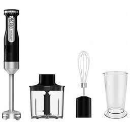 Максимальная мощность 1000Вт. Номинальная потребляемая мощность 600 Вт. Объем чаши измельчителя 500 мл. Объем мерного стакана 700 мл. Блендер электрический предназначен для смешивания, измельчения и взбивания продуктов и жидкостей в бытовых условиях. Цвет: черный. Насадки и ножи из нержавеющей стали. Специальная заточка ножей. Три сменные насадки: насадка для смешивания, венчик для взбивания, измельчитель. Противоскользящие ножки чаши измельчителя. Мерный стакан. 5 скоростных режимов. Режим «ТУРБО». Плавная регулировка скорости.