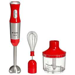 Номинальная потребляемая мощность 800 Вт. Объем чаши мини-измельчителя 860 мл. Объем мерного стакана 600 мл. Индикатор сети с LED-подсветкой кнопок. Нож и насадка из нержавеющей стали с 4 лезвиями. Плавная регулировка скорости. Режим ТУРБО. Три сменных насадки. Противоскользящие ножки чаши мини-измельчителя. Низкий уровень шума. Цвет: красный. Насадка для измельчения и перемешивания. Венчик с держателем. Мини-измельчитель с крышкой. Мерный стакан.