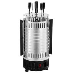 Номинальная потребляемая мощность 1450 Вт. Максимальная температура нагрева 200°С. Количество шампуров 8 штук. Длина шампура 37 см. Максимальная загрузка 5 кг. Частота вращения шампуров 3 об/мин. Электрошашлычница предназначена для использования в бытовых и аналогичных условиях и представляет собой устройство для приготовления гриля, шашлыка и других блюд из мяса, рыбы, овощей и др. Тип прибора - электрошашлычница с вертикальным расположением шампуров. Вертикальный нагревательный элемент (ТЭН) из нержавеющей стали. Тепловой экран из нержавеющей стали с ненагревающимися ручками. 8 шампуров из нержавеющей стали с ненагревающимися ручками. 8 чашечек для сбора жира, предотвращающих загрязнение шашлычницы. Кнопка включения/выключения на корпусе прибора со световым индикатором работы. Функция автоматического вращения шампуров для равномерного и быстрого приготовления продуктов.