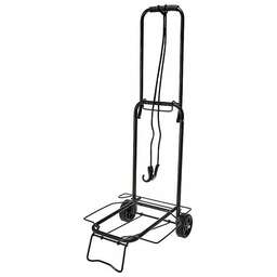 Параметры Грузоподъемность 50 кг Максимальная вместимость сумки 30 л Описание Тележка багажная ручная предназначена для перевозки грузов Удобна для любого путешествия Легко собирается в транспортное положение, оснащена специальными креплениями для удобной транспортировки груза Облегчает перемещение груза по лестнице При правильной эксплуатации имеет длительный срок службы Съемная хозяйственная сумка из прочного материала легко чистится (входит в комплект поставки и отдельной продаже не подлежит) Цвет сумки: бордовый с черным Удобная пластиковая ручка Съемные металлические колеса - 2 штуки