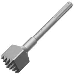 Бучарда Denzel 703137 размером 250 x 45 мм, с хвостовиком SDS-max, устанавливается в патрон перфоратора и используется для выполнения ударных работ. Позволяет придать шероховатость твердым поверхностям, оптимальна для обработки камня, кирпича, бетона, мрамора, гранита. Также применяется для удаления старых штукатурных и лакокрасочных покрытий. Преимущества Надежность — бучарда из прочной стали 40Cr устойчива к ударным нагрузкам. Износостойкость — рабочая часть твердостью 52 HRC долго сохраняет рабочие свойства. Быстрая подготовка к работе — хвостовик SDS-max быстро и надежно фиксируется в патроне перфоратора.
