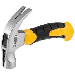 Цельнокованый строительный молоток-гвоздодер Denzel 10468 с бойком весом 450 г, с магнитом и двухкомпонентной обрезиненной рукояткой, используется при проведении строительных и монтажных работ. Благодаря магнитному фиксатору инструмент позволяет наживить гвоздь, не придерживая его рукой. Преимущества Устойчивость к повреждениям — инструмент имеет цельнокованую конструкцию. Высокий ресурс — рабочая часть прошла закалку до твердости 50-55 HRC. Универсальность — большой и малый гвоздодеры удобны для работы с гвоздями разного размера. Дополнительные возможности — в корпусе инструмента имеются отверстия для выгибания прутков и гвоздей. Комфортная работа — двухкомпонентная обрезиненная рукоятка не выскальзывает из ладони. Упор для монтажного захвата — может использоваться для проведения демонтажных работ.