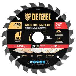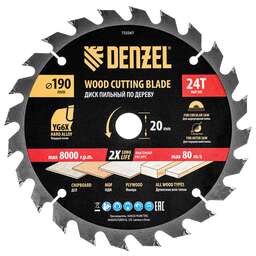 DENZEL Пильный диск по дереву ф190 х 20 мм, 24 зубьев 733347