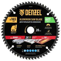DENZEL Пильный диск по алюминию ф165 х 20 мм, 60 зубьев 733747