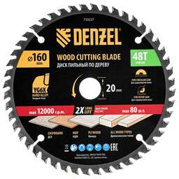 DENZEL Пильный диск по дереву ф160х 20 мм, 48 зубьев 733227