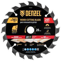 DENZEL Пильный диск по дереву ф165 х 20 мм, 20 зубьев 733237