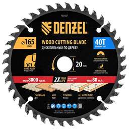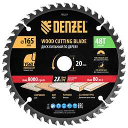 DENZEL Пильный диск по дереву ф165 х 20 мм, 48 зубьев 733257