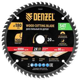 DENZEL Пильный диск по дереву ф180 х 20 мм, 54зубьев 733297
