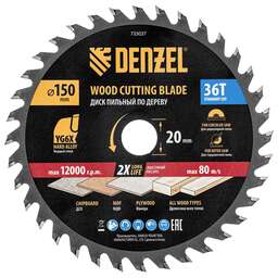 DENZEL Пильный диск по дереву ф150 х 20 мм, 36 зубов 733027