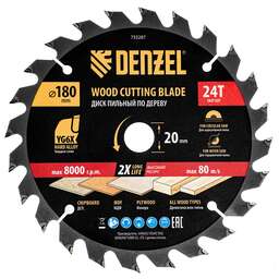 DENZEL Пильный диск по дереву ф180х 20 мм, 24 зубьев 733287