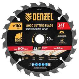 DENZEL Пильный диск по дереву ф165 х 20 мм, 24 зубьев, тонкий 733267
