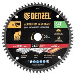DENZEL Пильный диск по алюминию ф190 х 20 мм, 64 зубьев 733767