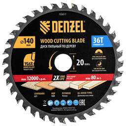DENZEL Пильный диск по дереву ф140 х 20 мм, 36 зубов 733017