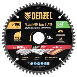 DENZEL Пильный диск по алюминию ф190 х 30 мм, 64 зубьев 733777