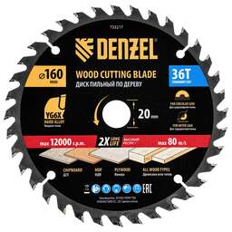 DENZEL Пильный диск по дереву ф160 х 20 мм, 36 зубьев 733217