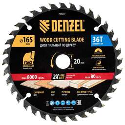 DENZEL Пильный диск по дереву ф165 х 20 мм, 36 зубьев 733247