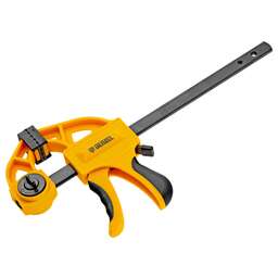 Струбцина F-образная быстрозажимная Denzel 20505 с пошаговым зажимом шириной 150 мм и глубиной 80 мм, с усиленным нейлоновым корпусом, позволяет прочно зафиксировать детали для их обработки, склеивания и выполнения других задач. Сила сжатия составляет 1300 Н. Струбцина подходит для бытового и профессионального применения.ПреимуществаУсиленная конструкция — нейлоновый корпус устойчив к ударным нагрузкам и падениям с небольшой высоты.Увеличенная жесткость и прочность — направляющая выполнена из двутаврового стального профиля и закалена.Универсальное применение — плавающая губка обеспечивает уверенное сцепление с любой поверхностью.Аккуратная работа с любыми материалами — съемные мягкие губки позволяют зафиксировать деталь без риска повреждения и деформации.Расширенный функционал — переставные губки позволяют использовать струбцину на разжим.Комфортное использование — струбцина весит всего 560 г, обрезиненная кнопка фиксации обеспечивает удобный захват.