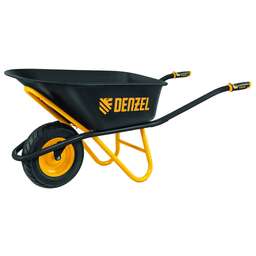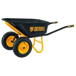 Усиленная строительная тачка Denzel 689365 с кузовом объемом 120 л и двумя колесами размером 16 х 4.00-8 предназначена для транспортировки грузов массой до 350 кг. Позволяет перемещать строительные материалы, грунт, удобрения, садовый мусор, пригодится также во время сбора урожая. Усиленная двухколесная конструкция отличается устойчивостью и выдерживает повышенные нагрузки, грузоподъемность 350 кг оптимальна для эффективного выполнения большого объема работ. Тачка незаменима на строительной площадке и на приусадебном участке, рекомендована для профессионального использования. Преимущества Надежность — рама и опора дополнительно усилены, что повышает прочность конструкции. Ударопрочность — кузов с завальцованными краями и внутренним ребром жесткости устойчив к деформации при интенсивных нагрузках. Защита от разрушения — кузов оцинкован и покрыт порошковой краской для предотвращения образования коррозии. Бескамерные колеса — шины с 6-слойным кордом 6PR отличаются повышенной прочностью и не требуют бортировки для устранения прокола. Продуманная конструкция — промышленные двухрядные подшипники закрытого типа обеспечивают плавный ход, а также защищены от попадания влаги и грязи, что продлевает срок службы тачки. Эргономичность — двухкомпонентные рукоятки с упорами обеспечивают надежный хват.