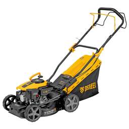 Бензиновая газонокосилка Denzel GLD-460-K 58814 с двигателем объемом 150 см? и травосборником объемом 50 л обеспечивает ширину скашивания 46 см. Предназначена для стрижки газонов и кошения травы в саду и огороде. Двигатель мощностью 3,5 л.с. позволяет эффективно решать поставленные задачи. Высота скашивания регулируется, предусмотрено 7 уровней (25-75 мм), что позволяет получить нужное травяное покрытие. Газонокосилка оптимальна для ухода за небольшим дачным участком. Преимущества 3 в 1 — боковой выброс, мульчирование и сбор в травосборник. Простая регулировка высоты скашивания — достаточно установить рычаг в нужное положение. Контроль количества травы в травосборнике — специальный индикатор позволяет оценить степень его наполненности. Быстрая очистка — удалить остатки травы и частиц грязи с внутренней поверхности деки можно под напором воды, подключив шланг к специальному штуцеру при помощи быстросъемного коннектора. Несложное обслуживание — воздушный фильтр легко извлекается для очистки или замены. Гарантия 3 года — надежность техники подтверждена производителем.