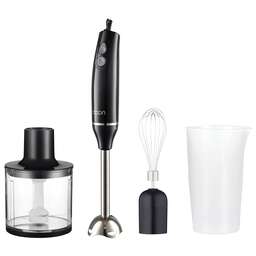 Блендер погружной, максимальная мощность 1000 Вт, импульсный режим работы, 2 скорости, насадка-блендер из нержавеющей стали, съемная насадка-венчик из нержавеющей стали, мини-измельчитель 500 мл, мерный стакан 500 мл, цвет черный со стальным