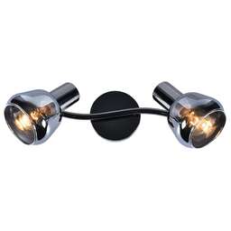 Тип светильника: спот Количество и мощность ламп: 2 x 40W Тип цоколя: G9 Цвет: Черный/Хром Размеры (Д х Ш х В): 360 x 90 x 125 Материал: металл/стекло S освещения: м2
