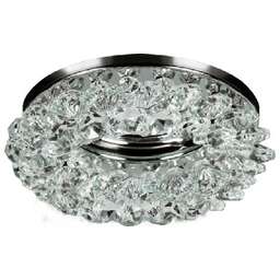 Светильник точечный литой неповоротный со стеклом и кристаллами, max 50Вт, G5.3, диаметр 95мм, высота 30мм, монтажное отверстие 60мм, IP20, 12В, хром/янтарное стекло/прозрачные кристаллы