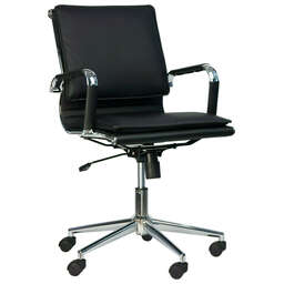 Встроенная поясничная поддержка снижает нагрузку на спину в течение рабочего дня. Механизм качания ТопГан позволяет не только качаться, но и фиксировать кресло в удобном рабочем положении. Прочная конструкция: Монолитный каркас в сочетании с хромированной стальной крестовиной обеспечивает надежность и долговечность использования. Ролики, предназначенные для паркета с диаметром штока 11 мм, обеспечивают легкое перемещение кресла, не оставляя царапин на полу. Подлокотники: Металлические хромированные с накладками из экокожи. Подголовник: нет. Газ патрон: да. Материал обивки: Экокожа. Материал набивки: Отсутствует. Тип: Для персонала. Цвет: Черный. Допустимая нагрузка: 120 кг. Рост: до 170см, 170-185см, 185-200см.