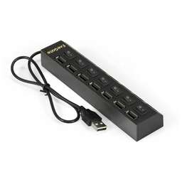 [USB-концентраторы] Exegate EX293978RUS USB-Хаб (концентратор) ExeGate DUB-72SW (кабель-адаптер USB2.0 --> 7xUSB2.0, кнопки включения/отключения для каждого порта, Plug&Play, черный)