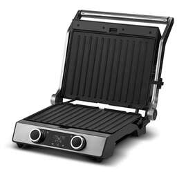 Тип управления: механическое. Установка времени приготовления: есть. Ширина рабочей поверхности: 30. Длина рабочей поверхности: 23. Антипригарное покрытие нагревательных частей: есть. Съемные формы: есть. Формы для готовки: панели для гриля. Установка температуры приготовления: есть. Информационный дисплей: есть. Лоток для сбора жира: есть. Индикатор включения: есть. Индикатор нагрева: есть. Автоматическое отключение (защитное): есть. Ненагревающаяся ручка: есть. Вес товара: 4.7. Раздельная регулировка температуры для пластин: есть. Раскрытие на 180 градусов: есть. Длина электрокабеля: 0.8. Габариты упаковки (ед) ДхШхВ: 0.4x0.195x0.385. Вес упаковки (ед): 5.7. Гарантия: 24 мес.. Цвет: серебристый. Размеры (ШхВхГ): 34.7 х 16 х 33.5см. Мощность: 2200 Вт. Температура: 160 - 210 °С. Особенности: раскрытие на 180 градусов, лоток для сбора жира. Мощность: 2200 Вт. Управление: механическое. Температура: 160 - 210 °С