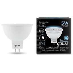 Тип товара: светодиодная. Мощность: 5. Световой поток: 530. Максимальный срок службы: 35000. Напряжение питания: 12. Патрон: GU5.3. Колба: MR16. Угол светового пучка: 120. Класс энергоэффективности: A. Матовая: да. Форма лампы: рефлектор. Габариты упаковки (ед) ДхШхВ: 0.25x0.05x0.105. Вес упаковки (ед): 0.49. Диммеруемая: нет. Цветовая температура: 4100. Цвет свечения: белый нейтральный. Тип лампы: светодиодная. Степень защиты: IP20. Гарантия: 60 мес.. Количество ламп: 10 шт.. Форма: рефлектор. Угол светового пучка: 120 °. Напряжение: 12 В. Параметры: 530 lm. Мощность: 5 Вт. Цоколь: GU5.3. Количество ламп: 10 шт