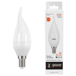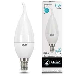 GAUSS Лампа LED E14, свеча, 6Вт, 103101406, одна шт