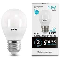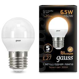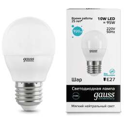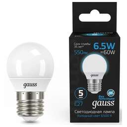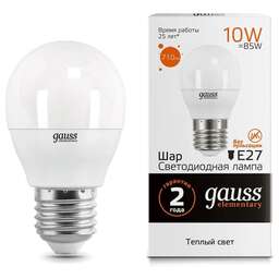 GAUSS Лампа LED E27, шар, 6.5Вт, 10 шт. [105102207]