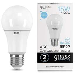 Тип товара: светодиодная Колба: A60 Бренд: GAUSS PartNumber/Артикул Производителя: 23235 Энергосберегающая: ДА Класс энергоэффективности: A+ Матовая: ДА Описание: Светодиодная лампа Gauss - безопасный для здоровья и окружающей среды источник света. Она не пульсирует, мгновенно включается, не содержит ртути и имеет больший срок службы, чем лампы накаливания и КЛЛ, экономичнее ламп накаливания до 10 раз. Световой поток: 1480 lm Максимальный срок службы: 25000 ч Угол светового пучка: 240 ° Вес упаковки (ед): 0.6 кг Серия: Elementary Патрон: E27 Количество ламп: 10 шт Цветовая температура: 6500 К Цвет свечения: белый холодный Индекс цветопередачи: 80 Тип лампы: светодиодная Степень защиты: IP20 Мощность: 15 Вт Габариты упаковки (ед) ДхШхВ: 0.3x0.25x0.06 м Объем упаковки (ед): 0.0045 м3 Напряжение питания: 220 В
