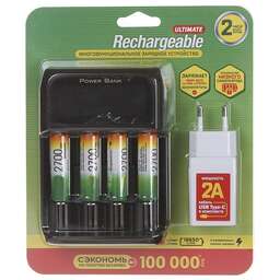 GP Аккумулятор + зарядное устройство PowerBank 270AAHCMHSPBA-2CR4 AA NiMH 2700mAh (4шт) блистер