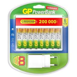 GP Аккумулятор + зарядное устройство PowerBank 270AAHC/CPBXL-2CR8 AA NiMH 2700mAh (8шт) блистер