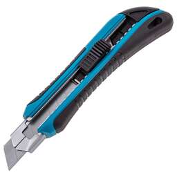 Нож Gross 78893 длиной 170 мм, с обрезиненным ABS-корпусом, выдвижным сегментированным лезвием шириной 18 мм из стали SK-5 и металлической направляющей, с 5 лезвиями, предназначен для профессионального использования в ходе ремонтно-монтажных работ. Пригодится также для решения бытовых задач. Нож легко режет бумагу, картон, кожу, поможет раскроить линолеум или обои. Благодаря металлической направляющей инструмент не сломается даже при работах со значительным усилием. Преимущества Износостойкость — лезвие из высококачественной японской стали SK-5 толщиной 0,6 мм долго сохраняет режущую способность. Долговечность — корпус изготовлен из ударопрочного ABS-пластика, поэтому инструмент устойчив к механическим воздействиям. Высокий рабочий ресурс — когда сегмент затупится, его достаточно отломить, после чего работу можно продолжать. Продуманная конструкция — благодаря рифленому упору для большого пальца лезвие легко выдвигается и задвигается. Эргономичность — резиновые вставки под пальцы на корпусе обеспечивают удобный хват и препятствуют выскальзыванию инструмента из руки. Расходники в комплекте — к ножу прилагается 5 запасных лезвий, которых хватит надолго.