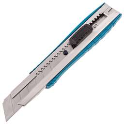 Выдвижной нож-скребок Gross 78890 в алюминиевом корпусе — универсальный инструмент 2 в 1. Используется в качестве скребка для удаления краски, шпаклевки, обоев и клея с гладких поверхностей, а также в качестве ножа для разрезания картона, линолеума, пластика и других материалов. Лезвие шириной 19 мм автоматически принимает 1 из 4 положений при перемещении «бегунка», что упрощает и ускоряет работу. Нож совместим с лезвиями Gross 79377 (приобретаются отдельно). Инструмент незаменим при проведении строительных, ремонтных и отделочных работ. Преимущества Эффективность — трапециевидное лезвие из высокопрочной стали SK-2 Black на 25% острее стандартных аналогов. Ударопрочность — корпус из авиационного алюминия отличается повышенной устойчивостью к повреждениям. Износостойкость — лезвие толщиной 0,6 мм и твердостью 65 HRC устойчиво к коррозии и долго сохраняет режущую способность. Быстрая замена лезвия — восстановление работоспособности ножа не занимает много времени. Расходники в комплекте — инструмент поставляется с 5 запасными полотнами. Дополнительные возможности — в конструкции предусмотрен ключ для легкого открывания банок с краской. Комфортная работа — корпус с двухкомпонентными антискользящими вставками удобно ложится в руку. Компактность — длина корпуса составляет всего 16,5 см, вес — 168 г, поэтому нож удобно носить с собой.