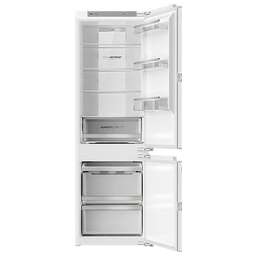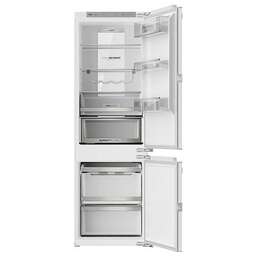 Встраиваемый двухкамерный холодильник с нижним расположением морозильной камеры Общие данные: Размеры: высота: 177.2 см ширина: 55.8 см глубина: 54.5 см Общий объем/ Полезный объем: Холодильника: 261/- л Холодильной камеры: 185/- л Морозильной камеры: 76/- л Электронное управление Класс энергопотребления: A+ Климатический класс: SN-T (от +10°С до +43°С) Количество компрессоров: 1 Годовое потребление энергии: 275 кВтч/год Цвет: белый Холодильное отделение: 4 полки 3 полки на дверце Multi Air Flow Система Nо Frost (Frost Free, Ноу Фрост) Освещение LED Ящики для овощей с регулировкой влажности Морозильное отделение: Система Nо Frost (Frost Free, Ноу Фрост) Мощность замораживания: 8 кг/сутки Суперзамораживание 3 ящика Дополнительная информация: Инверторный компрессор Сенсорный дисплей Wi-Fi управление Функция Отпуск Сигнал открытой двери Уровень шума дБ (А): 35 Тип хладагента: R600a Напряжение/Частота: 220-240 V / 50Hz Размер ниши для встраивания (ВхШхГ): 177.6-178.2x56-57x55 см Вес: 70 кг