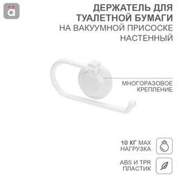 Настенный держатель для туалетной бумаги фиксируется на различных вертикальных поверхностях при помощи водостойкой вакуумной присоски. Такой многоразовый тип крепления обеспечивает быструю установку одним нажатием без использования клея и специальных инструментов. Подходит для размещения на кухне и в ванной. Удобно крепится к навесным шкафам. Максимальный вес нагрузки составляет 10 кг. Материал изготовления – АБС, ТПР, поликарбонат. Цвет – белый. В комплектацию входят вакуумный держатель, крючок и карточка для легкого снятия.