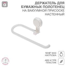 Настенный держатель для бумажных полотенец фиксируется на различных вертикальных поверхностях при помощи водостойкой вакуумной присоски. Такой многоразовый тип крепления обеспечивает быструю установку одним нажатием без использования клея и специальных инструментов. Подходит для размещения на кухне и в ванной. Удобно крепится к навесным шкафам. Максимальный вес нагрузки составляет 10 кг. Материалы изготовления – АБС и ТПР. Цвет – белый. В комплектацию входят вакуумный держатель, крючок и карточка для легкого снятия.