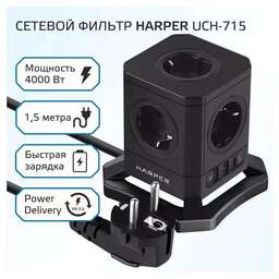 Сетевой фильтр Harper UCH-730- это идеальное сочетание функциональности и безопасности. Он обеспечит надежное подключение ваших устройств и защитит их от перепадов напряжения. Сетевой фильтр оснащен кабелем длиной 3 метра. Максимальная мощность нагрузки в 4000 Вт гарантирует, что вы сможете подключить все необходимые устройства без риска перегрева. Корпус выполнен из огнеупорного пластика, который выдерживает температуры до 850 °С, что обеспечивает дополнительную безопасность. Кроме того, устройство оснащено двумя USB портами и одним портом Type-C с поддержкой Power Delivery 3.0. Это позволяет быстро и удобно заряжать ваши гаджеты, не занимая при этом дополнительные розетки. Сетевой фильтр Harper UCH-730- это идеальное сочетание функциональности и безопасности. Обеспечьте надежное подключение ваших устройств и защитите их от перепадов напряжения.