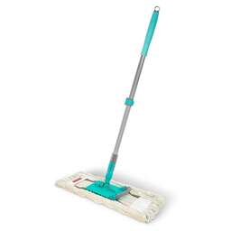 Швабра предназначена для влажной уборки пола. Идеально подходит для уборки квартир до 100 кв.м. Швабра оснащена телескопическим механизмом, что позволяет выбрать комфортную длину для вашего роста минимальная длина 75 см, максимальная длина 130 см. Платформа швабры вращается на 360 градусов, а равномерный прижим платформы к полу позволяет делать уборку без разводов. Насадка швабры из микрофибры обладает хорошей способностью впитывать и удерживать воду, легко отжимается, не впитывает запахи, прочно крепится к платформе с помощью «карманов» и выдерживает до 600 циклов уборки. Насадку можно стирать в стиральной машинке при температуре 60 градусов. На ручке швабры есть петля для подвеса на крючок, что позволяет хранить ее компактно.