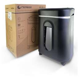 HELEOS Шредер АП20-4 черный с автоподачей (секр.P-4) фрагменты 131лист. 20лтр. скрепки скобы пл.карты