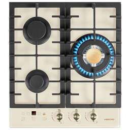 Встраиваемая газовая варочная поверхность HIBERG VM 4535 Y из закаленного стекла в бежевом цвете, оснащена 3 конфорками и функциями: автоматический «электророзжиг», «газ-контроль» и сенсорный таймер отключения. Компактная рабочая поверхность выполнена из закаленного стекла - прочного и долговечного материала, на ней располагаются три конфорки разных по диаметру и мощности огня. WOK конфорка мощностью 3,4 кВт позволяет ускорить закипание воды и использовать интенсивную скорость прожарки. Мощность любой горелки можно регулировать с помощью поворотных переключателей. Для удобства пользования варочной панелью в переключатели встроен «электророзжиг», который позволит одним нажатием руки легко включить нужную конфорку без использования спичек. В варочной поверхности эффективно продумана система безопасности при утечке газа. В случае пролива жидкости на варочную панель или затухания пламени от сквозняка, в конфорке срабатывает функция газ-контроль и подача газа прекращается. Сенсорный индивидуальный таймер для каждой конфорки дает возможность контролировать время готовки каждого блюда. Каждая конфорка будет отключаться именно в то время, которое было задано именно для нее. Таймер устанавливается с диапазоном от 1 до 99 минут, по истечении заданного времени конфорка отключается автоматически. Поверх конфорок установлены чугунные решетки новой конструкции: соприкасаясь со стеклянной панелью только спереди и сзади, обеспечивают меньшую нагрузку на стекло и не оставляют царапин. Прочны…