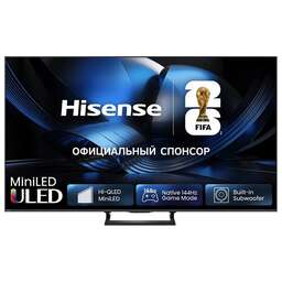 Hisense 55U7Q — 55-дюймовый 4K QLED телевизор Изображение Тип панели: VA Разрешение: 4K UHD (3840×2160) Подсветка: QLED + DLED Яркость (типичная): 400 нит Пиковая яркость: 600 нит Контрастность: 5000:1 Цветовой охват: 90% DCI-P3 Частота обновления: 144 Гц Поддержка HDR: Dolby Vision, HDR10, HDR10+, HLG, Dolby Vision IQ Функции улучшения изображения: 4K Upscaler, MEMC, Filmmaker Mode Игровые возможности Режим HDR для игр: Да FreeSync Premium: Да VRR: 48–144 Гц ALLM: Да Игровой режим: 144Hz Game Mode PRO Input Lag: ~13.2 мс Дополнительно: Game Bar Аудио Акустика: 2.0.2 канала (2×10 Вт + 2×8 Вт) Поддержка: DTS Virtual X, AC-4, NICAM/A2 Dolby Atmos: Нет Сабвуфер: Нет Смарт-функции Платформа: VIDAA U9 Голосовые помощники: Amazon Alexa (встроенный), Vidaa Voice Поддержка AirPlay 2, Screen Sharing, контент с Android Браузер: Да (Odin) HbbTV: 2.0.4 Подключения Wi-Fi: 802.11 a/b/g/n/ac (2.4G/5G) Bluetooth: 5.0 HDMI: 4 порта (все HDMI 2.1, включая eARC, VRR, ALLM) USB: 1×USB 3.0, 1×USB 2.0 CI+